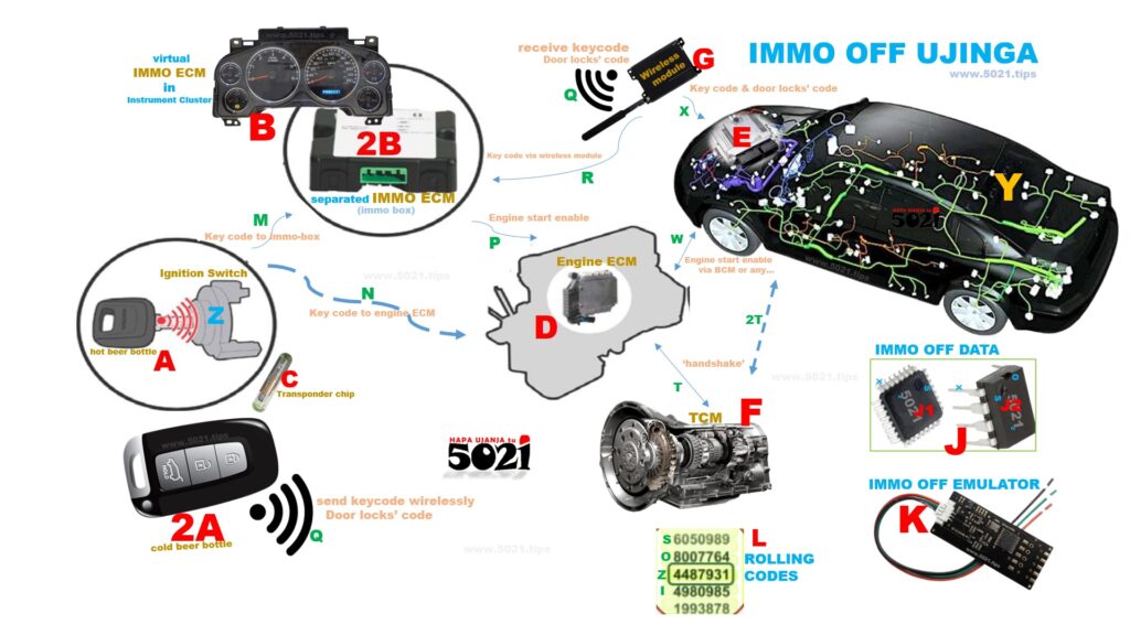 Kwa kutaka kuzuia wizi, walifanya uchawi kwenye gari kwamba isipo kuwa funguo maalum ya hiyo gari maalum, hiyo gari haiwezi kuendeshwa. Kwenye funguo waliweka kadude fulani kanaitwaTransponder Sasa haka kadude namna tulivyoneshana kwa video, kuna neno siri ama PIN a.k.a password ambao lazima ifanane na ilyo kwenye gari. Isipo fanana gari haitawaka!