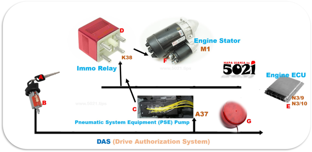 Y) As soon as the ID-code ecu (B) wakes up, it tells the Smart ECU (E) to verify it’s self!