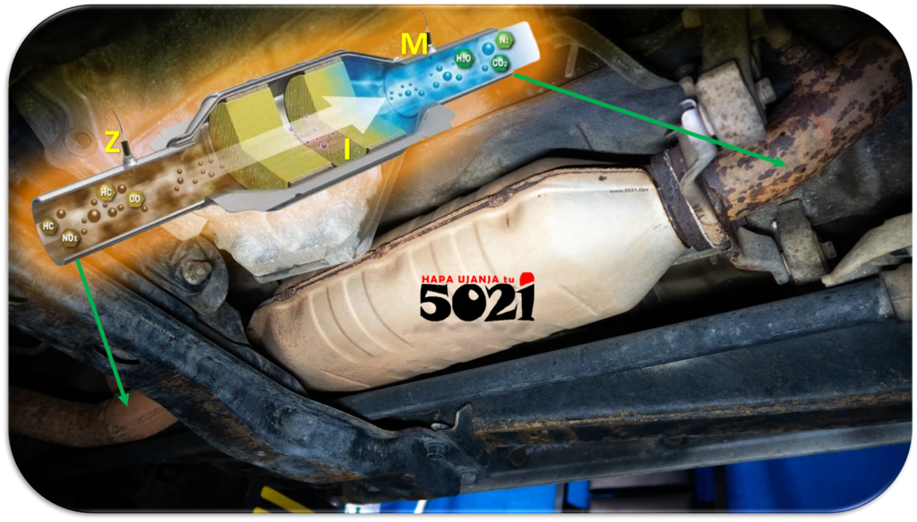 The Vehicle’s emission control system could include, Catalytic Converter that converts ‘smoke‘ at (Z) into less harmful sh*t at (M)🧬!