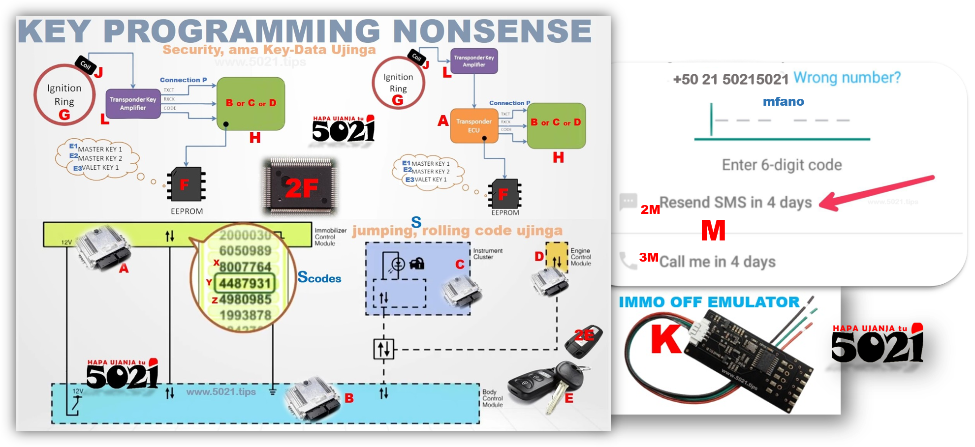 (A and D) have some rolling code algorithm between them, to verify the key🔑to do whatever nonsense in the vehicle without starting the engine👌!
